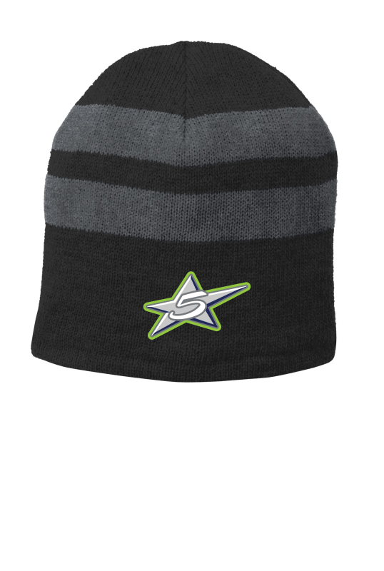 Classic stripes and warm fleece lining make this beanie a stylish cold-weather must-have. 100% acrylic (Black/Athletic Red Black/White) 60/40 poly/acrylic (Athletic Oxford/Neon Blue) 89/11 acrylic/poly (Black/Athletic Oxford Navy/Athletic Oxford) 100% polyester fleece lining