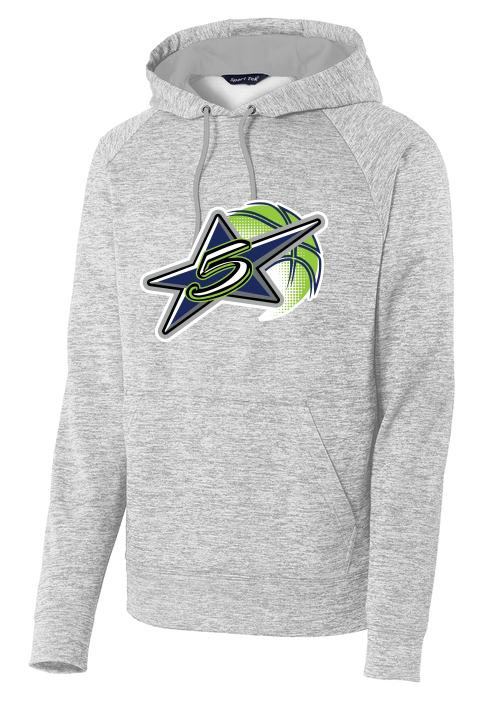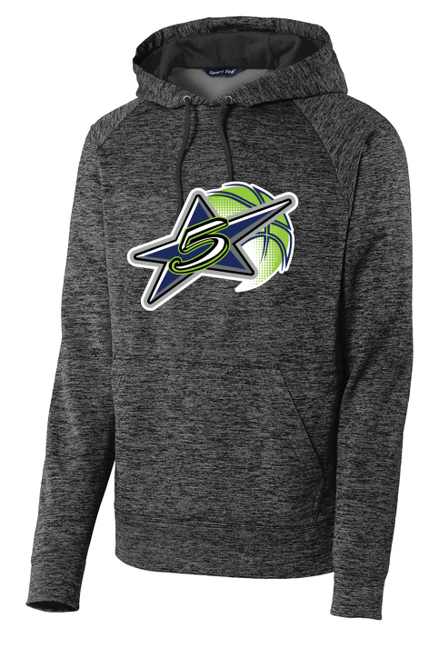 SPORT-TEK POSICHARGE ELECTRIC HEATHER FLEECE HOODED PULLOVER. ST225 BASKETBALL LOGO