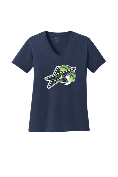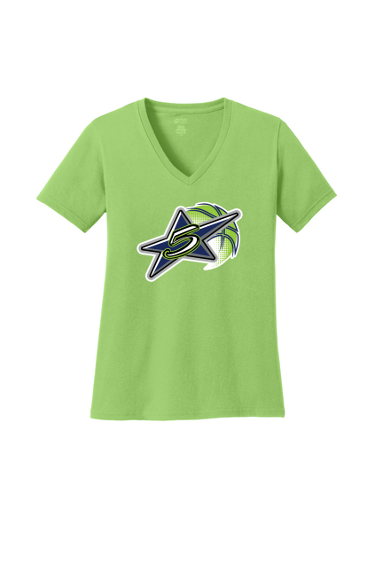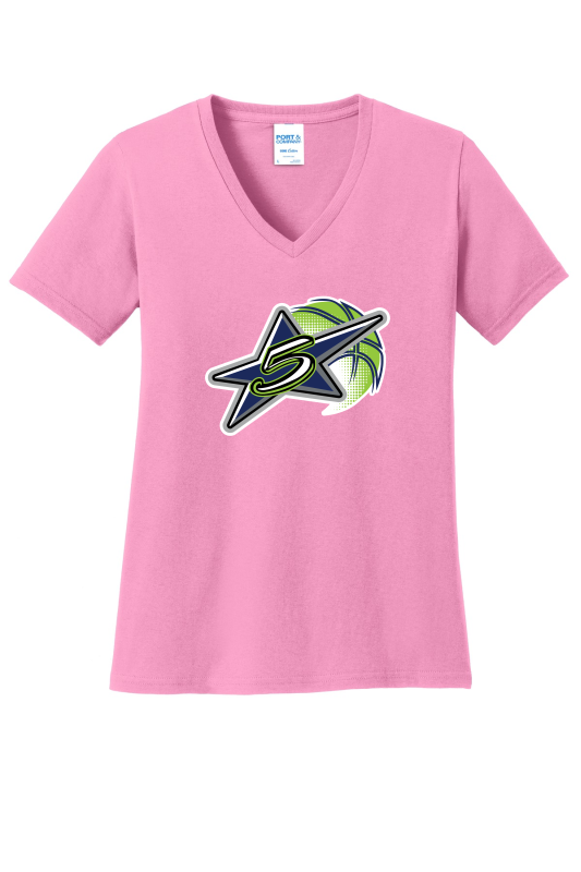 PORT & COMPANY LADIES V-NECK TEE. LPC54V BASKETBALL LOGO