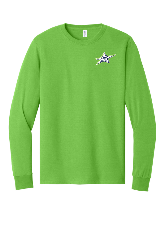 5.4-ounce 50/50 cotton/poly jersey 47/53 cotton/poly (Oxford) Moisture-wicking Tear-away label Double-needle coverstitching on front neck Seamless 1x1 rib knit collar Shoulder-to-shoulder taping Rib knit cuffs Double-needle hem Ash (formerly Birch) Due to the nature of 50/50 cotton/poly neon fabrics special care must be taken throughout the printing process.