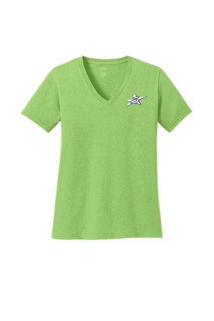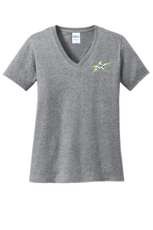 PORT & COMPANY LADIES V-NECK TEE. LPC54V SPLIT LOGO